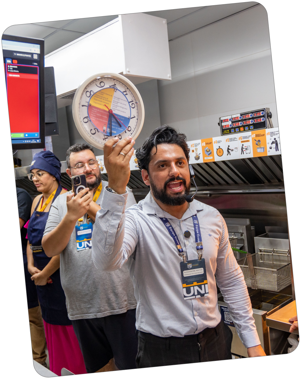 Ali ele aprendeu algo simples: cozinhas rápidas não dependem de pessoas extraordinárias. dependem de processos claros. Hoje, ele ensina essa metodologia para donos reais de hamburguerias e restaurantes aplicarem usando a própria estrutura. Mais de 10.000 alunos já passaram pelo treinamento Cozinha Super Rápida.